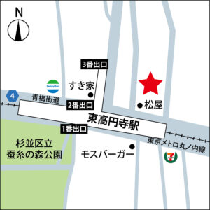 本事务所最近的车站为地铁丸之内线的「东高円寺」站。